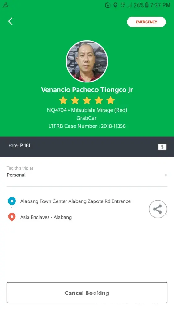 Ds hppened ystrday Aug.7. Driver named Ronald Sacopon Salgado asked me when I was already sitting inside his taxi, how much do I need to pay? I said I dont know d exact amoun.Based on my Grab E-Receipt, my ride fare was P 89.00 PLUS ds additional BOOKING FEE? Dat costs P 75.00, a total of P 164.00.But d driver charged me P 220.00.And dat's too much.