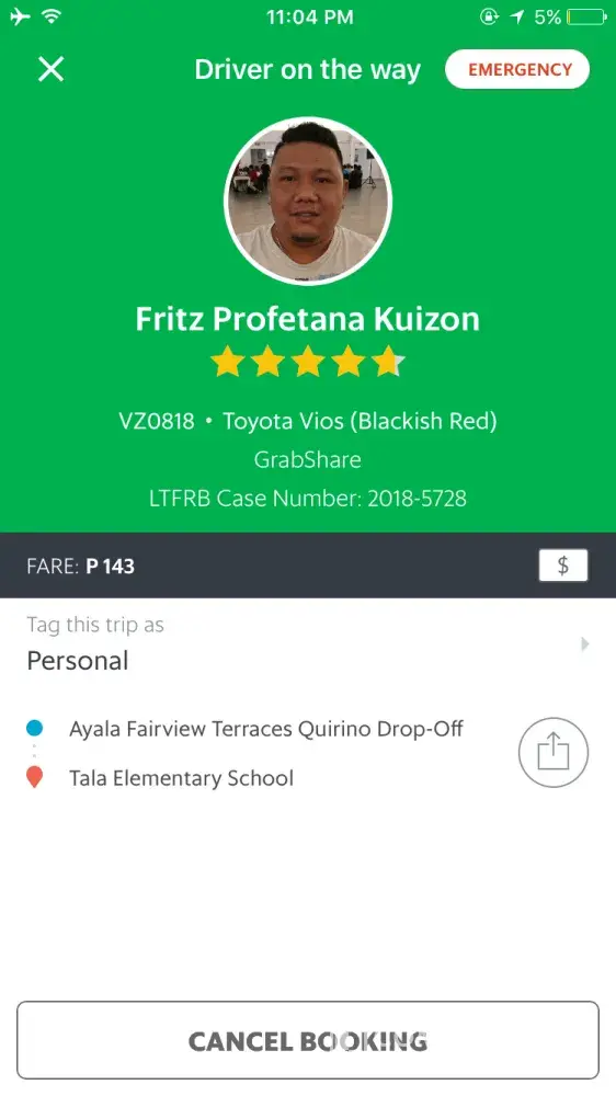 Just want to share my experience last night (aug.17, 2018-10:59pm) Its raining hard that time and decided to booked via grab from Faiview terraces-Tala Elementary School.