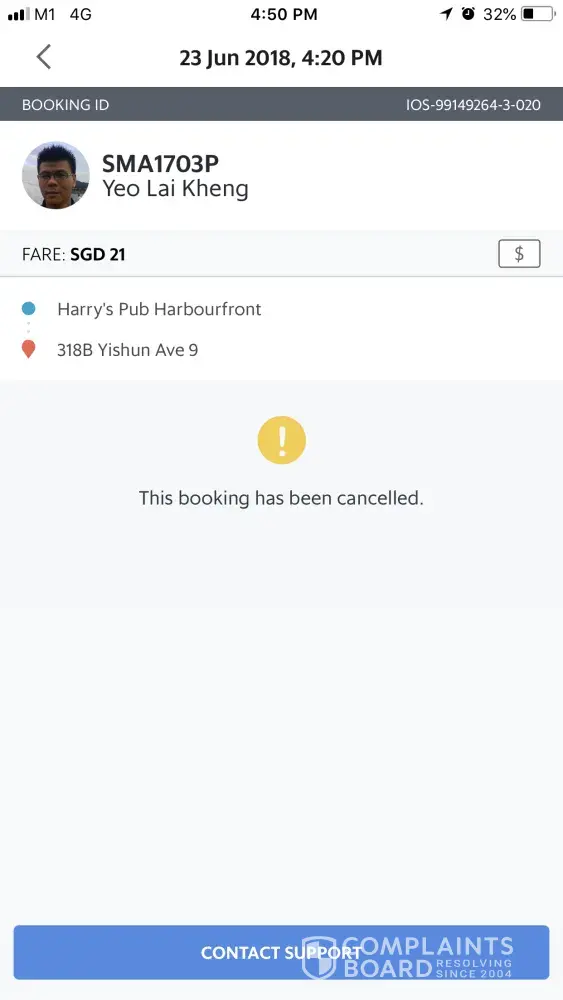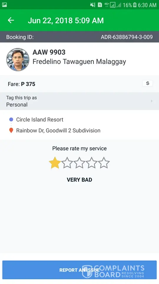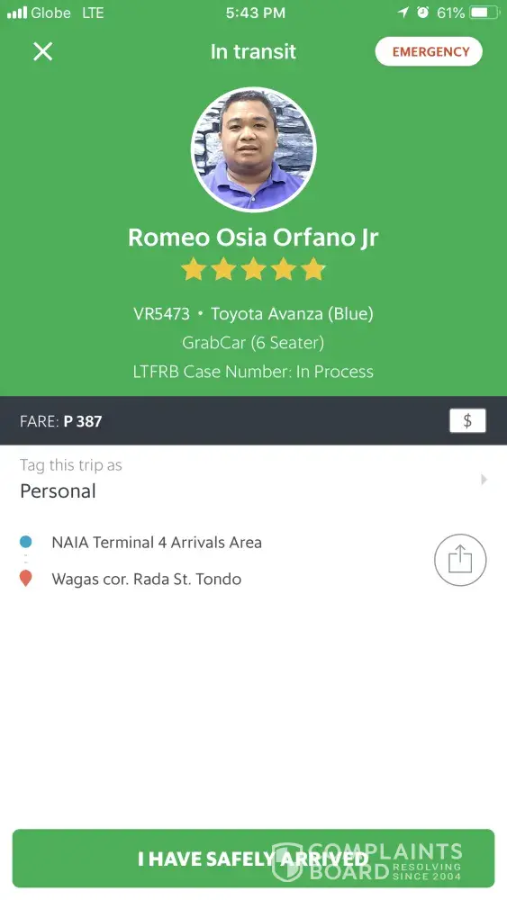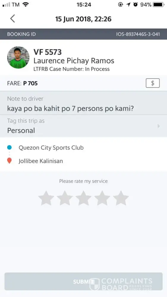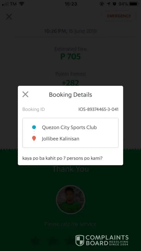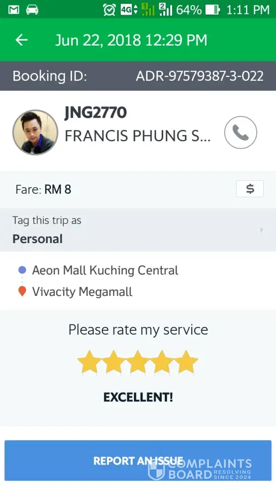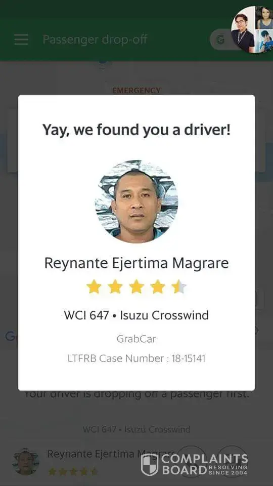 I am complaining about the grab driver