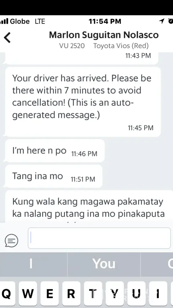 I cancelled a grab booking before there was any driver willing to accept my request. It was cancelled 11:42 pm. I took a taxi instead because rhe rain was pouring heavily. While on the taxi i received a message that driver is on the way at 11:45 pm. I cancelled at 11:42 pm so why did grab continue? Then the driver started sending cursing sms text messages via grab's sms txt messaging. You can check the screen shot photos attached. I jope grab has the anility to discipline this kind of driver. There were times that drivers cancelled my bookings too but i did not send them bad messages.