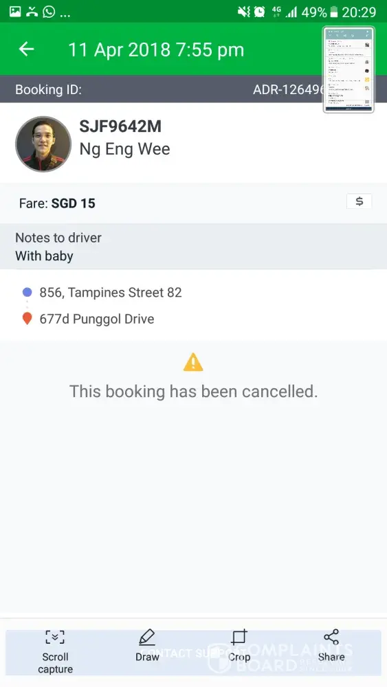 I want to complain this car plate slk3959p name goh yong poo. for cancelled my booking id ios-[protected]-3-1104