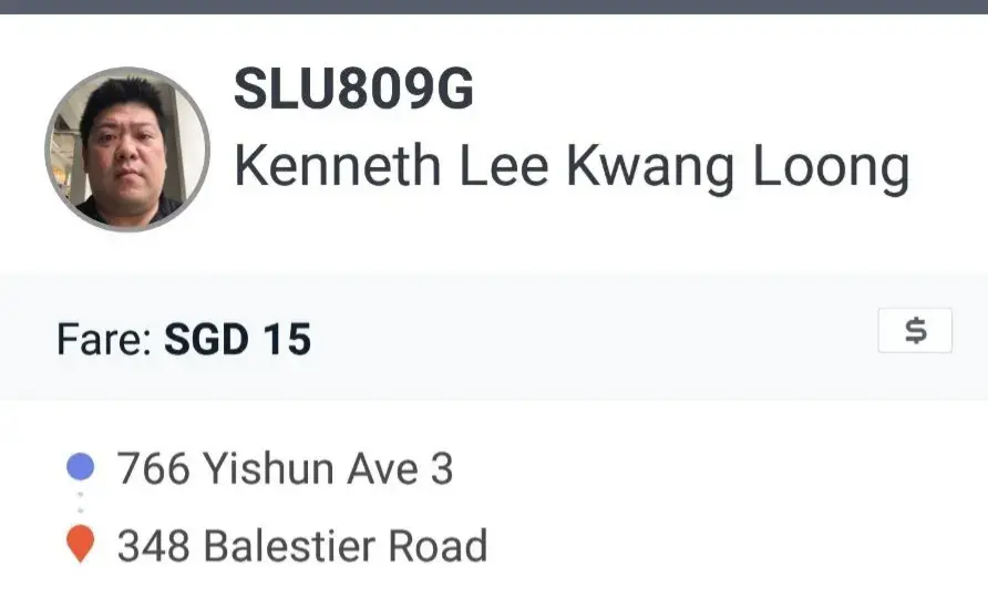 Taxi Driver : Kenneth Lee Kwang Loong, Grab : SLU809G