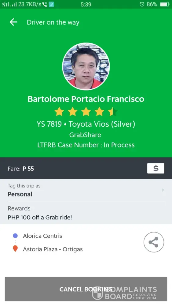 GRAB Driver: Arvin De Guzman of Toyota Vios ABR 3043 accepted my booking for a friend From Manila To Southwoods. He then sent a text asking for us to pay x2 of the original fare because accdg. to him he will have a hard time finding passengers in Southwoods. So, we declined his proposition and asked him to cancel the trip but he doesn't want to. He's insisting that I should cancel it because he needs to call GRAB before he can cancel — which is absurd! I dont want to cancel because it will affect my cancellation rate. I was polite with him initially but he is just unbelievable. He is even telling me that it is GRAB's policy that if the booking is outside manila the fare should be x2. Is that true? If it is then why we (the riders) didn't receive that announcement for us to be aware? This Grab Driver is just merely unbelievable!