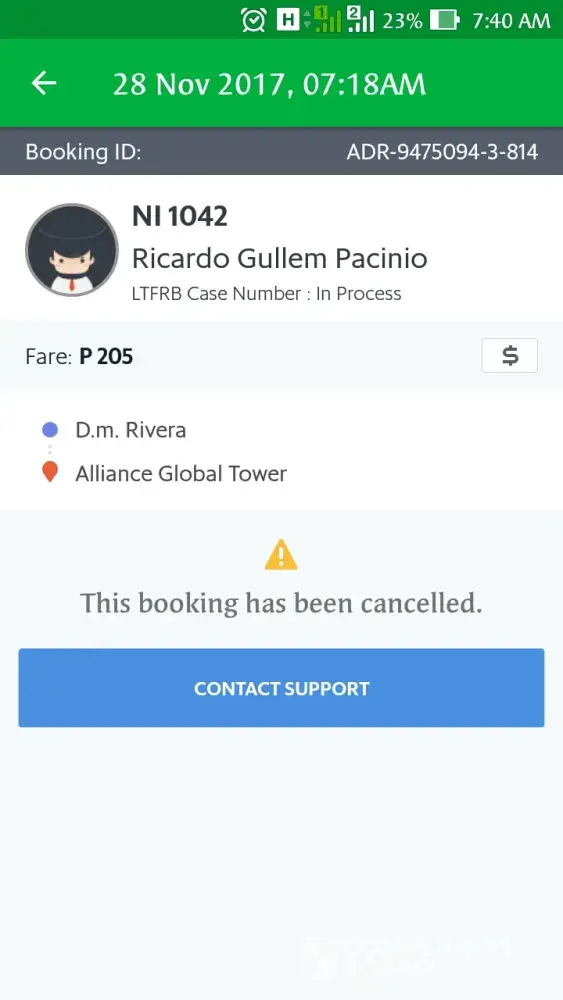 I would like to file a complain regarding on my cancelled trip November 19, 2017 Sunday. Mr Camposano who is the Grab driver for the said trip, I called the driver when the app notified me that the car has arrived to the pick up point. The driver asked if our booked trip has two destinations and I confirmed to the driver that we booked two destinations because my friend and I was about to go home. He even said that the last destination is far and the bill is only Php 189 and after that he hang up the phone and never showed up to the pick up area. He didn't even notify me that he doesn't to take the trip anymore so we waited for atleast 5 to 10 minutes waiting for him to show up.