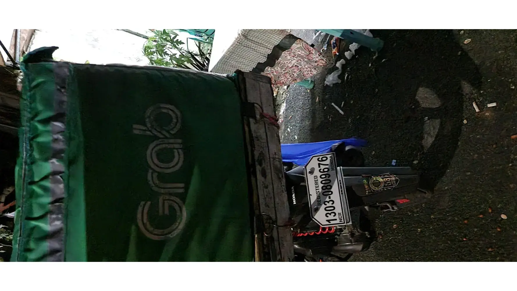 You have one of your riders who goes around the University of the Philippines in Diliman. Quezon City posing as one of its security personnel (Special Secretly Brigade) to extort money from coupes in vehicles with his allegation of lascivious acts within their parked vehicles. He uses this very motorcycle with the Grab box in place. Please handle this before he ruins the name of your company