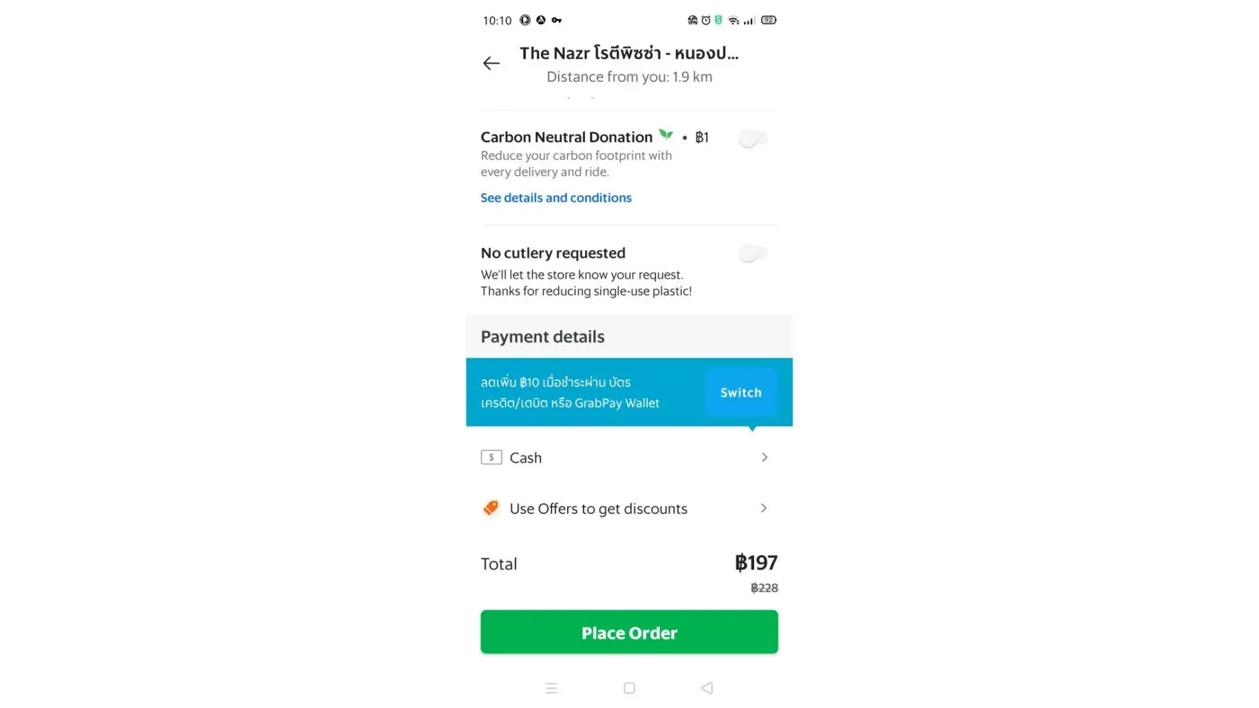 The first problem happened quite a while ago, when I ordered a pizza one evening and the driver arrived in the rain, with the pizza in his box with no bag. The pizza was pretty much destroyed it had been flipped over in the box and the box was soaking wet. I paid 366 baht for the pizza and couldn't or wouldn't eat it. So I contacted Grab, sent in the pictures of the food and the receipt. They gave a case number and I elected to have the money sent back to my bank account. Months later and the money never arrived. So I sent a message and refused to use Grab until they refunded my money. But to my knowledge the money was never returned.