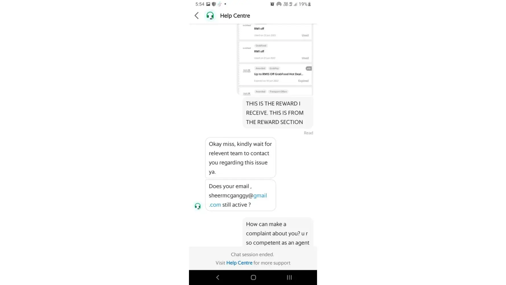 Grab poor customer service