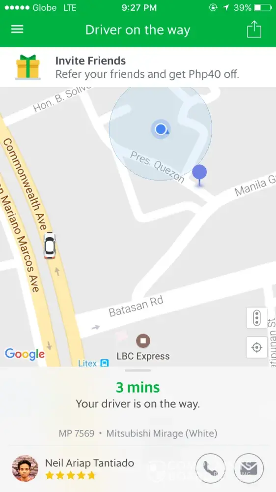 I booked from SM City North EDSA to 47 Matatag St. Baranggay Pinyahan, Quezon City.