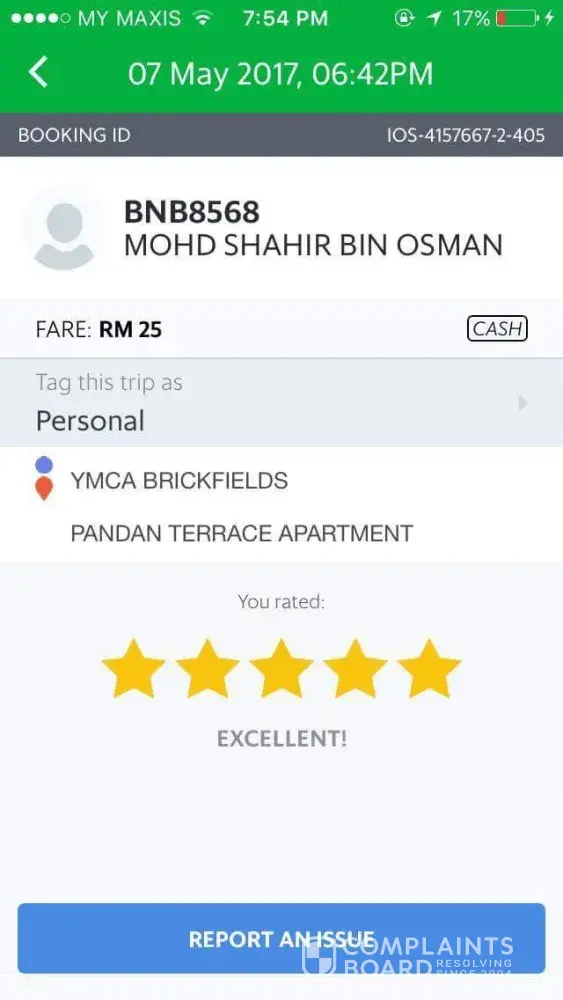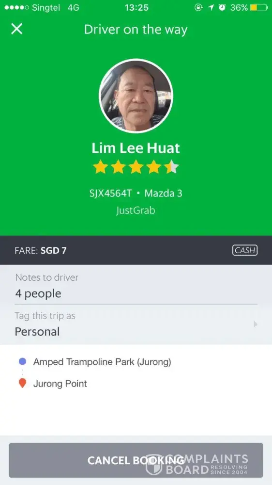 I am writing to your office to file a complaint with the GrabShare booking I am into at this moment.