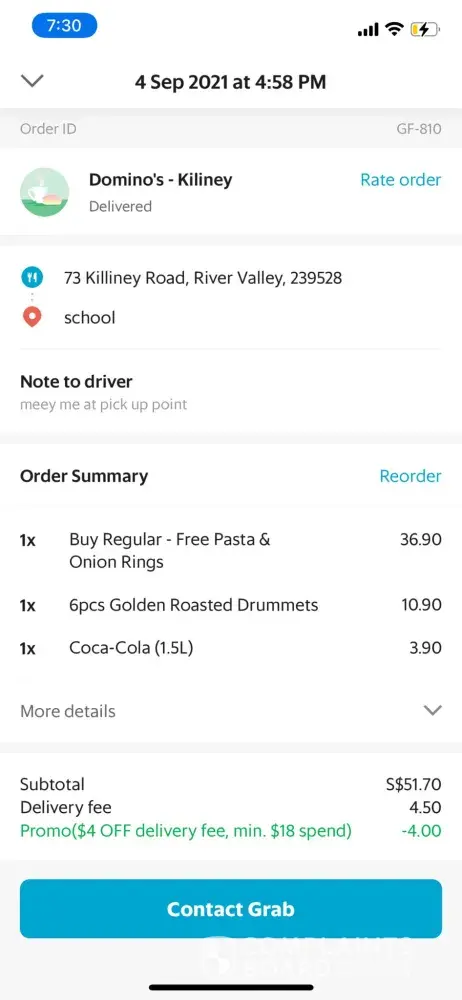 1. I ordered the first delivery from grab in 16:58 in 4 Sep, and no one call and the deliver just finished my order at 17:36 without any notification;