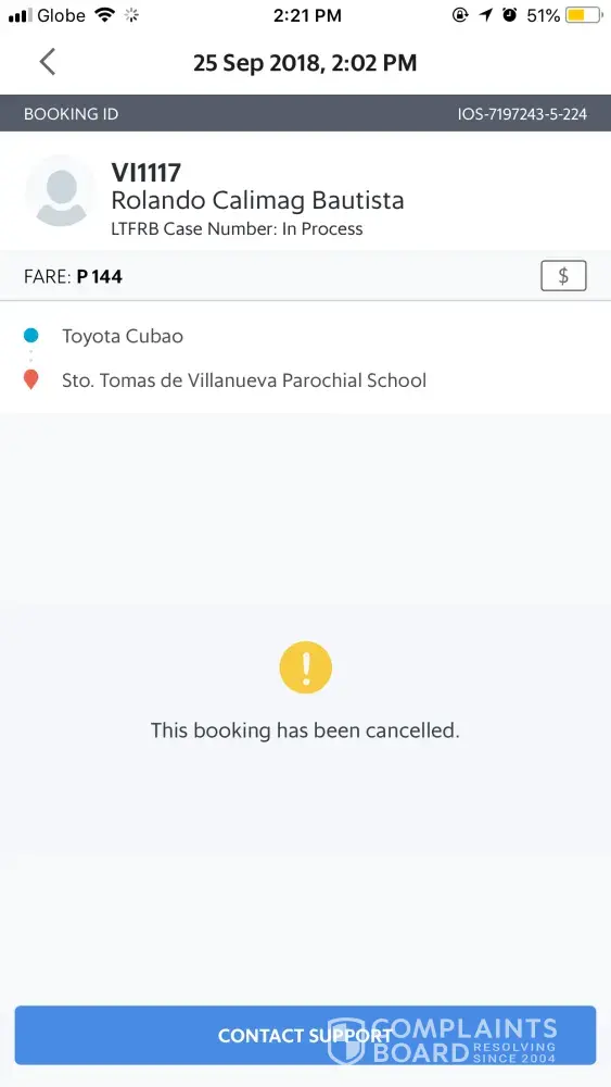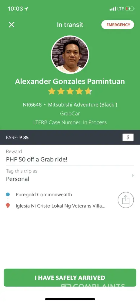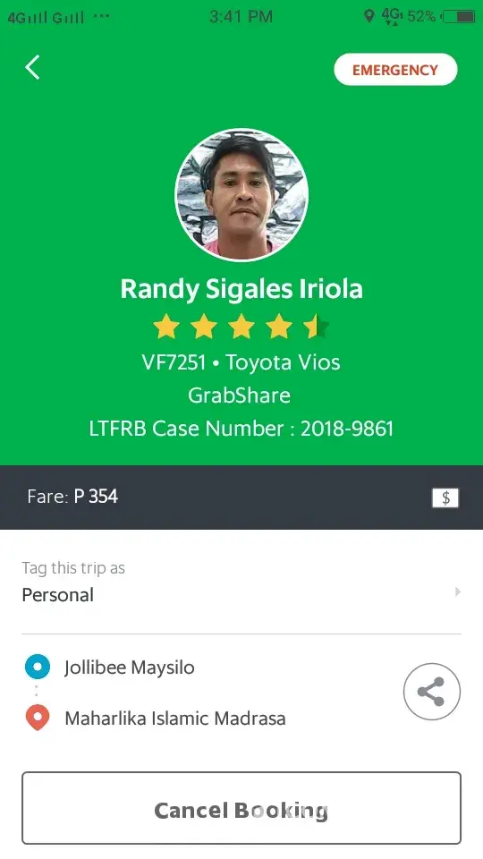 Ung bill ko po is 112 pesos nagbigay ako ng 1000 pesos kadahilanan po n wlang barya si driver sinarado nya n 110 pesos nalang yung babayaran ko..sa binigay ko 1000 ang change ko ay 890 pa po kaso binigay nya lang is 490 diko n sya nahabol nung napnsin ko ang sinukli nya s akin please sana maaksyunan po ito at maibigay ang kulang na 400 pesos..Driver name JAYSON ERESPE GAYATIN