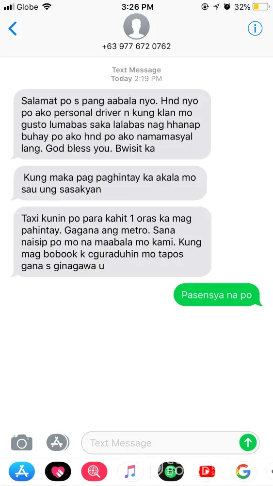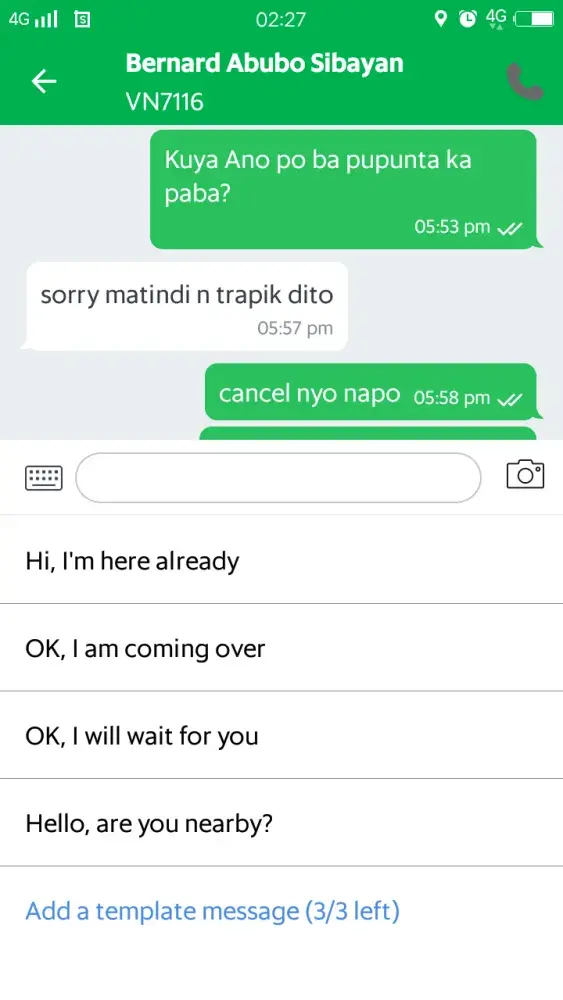 Sana maturuan ng leksyon yang bastos na grab driver na yan wala syang karapatan na sabihan ako ng "bwisit ka" hindi sya ang unang driver na na cancell trip at nag hintay ng 3 minutes kung naabala ka pasensya na pero wala kang karapatan sabihan ako ng kung ano ano at sabihan ng bwisit ako kahit bayaran ko yang 144 na trip ko daig mo pa ang babae pumutak.