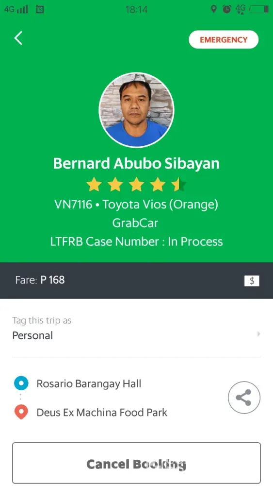 September 29 I book grab around 5:35pm at Rosario baranggay hall and VN7116 (Bernard abubo sibayan) accepted it so after few minutes I asked him if he's nearby because I saw he's not moving but I know he's not so far from where I am so I played games on my phone while waiting then I check the app if where he is and I was shock because he already pass from where I am and too far then he message me that waze guide him in wrong way so I asked him to cancel it so I can book another cab and he told me if I'm in a hurry I should be the one to cancel it... I Dont want to cancel because I don't want to be charged so I waited and I can see that he's not moving from where he is and until now it's 3:00am he's still in the same place and he's not cancelling the booking he also told me he'll be thankful if I report him to grab because he'll have reason to leave. I don't want to encounter grab driver like that anymore I am a regular customer I have to ask my friend to book grab for me so I can go home I cannot book because until now he's not cancelling the booking and I don't want to cancel also I want him to learn his lesson.