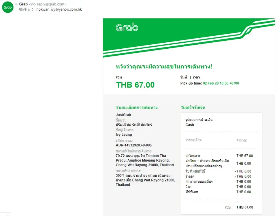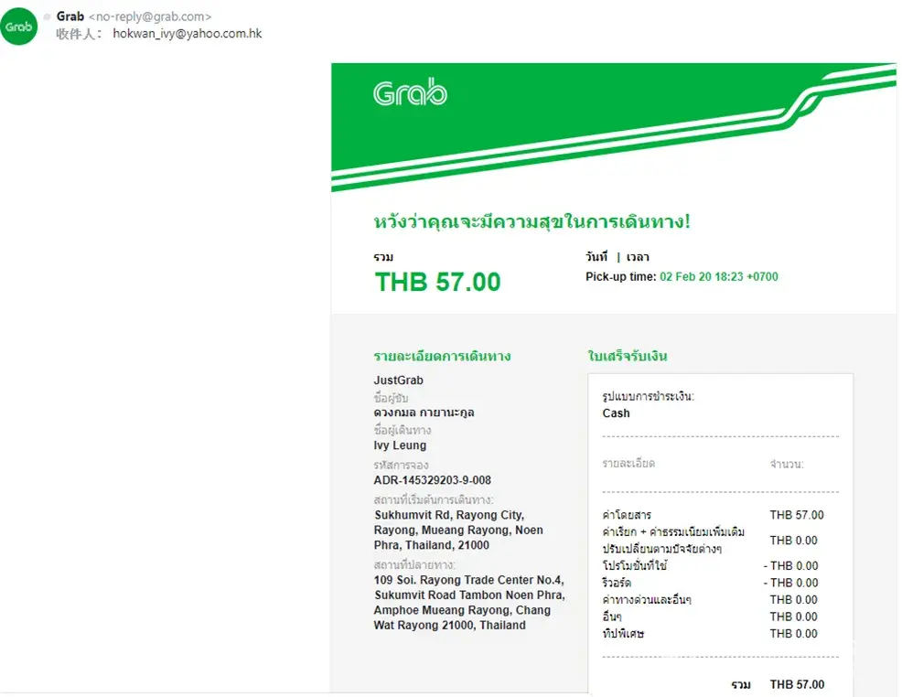 I received 3 e-receipts from my email today saying that I used the service (please see attachments). But the fact is, I haven't been to Thailand since November 2018. Would you please investigate and reply asap? I hope my credit card has not been charged and my personal information has not disclosed. Thank you.