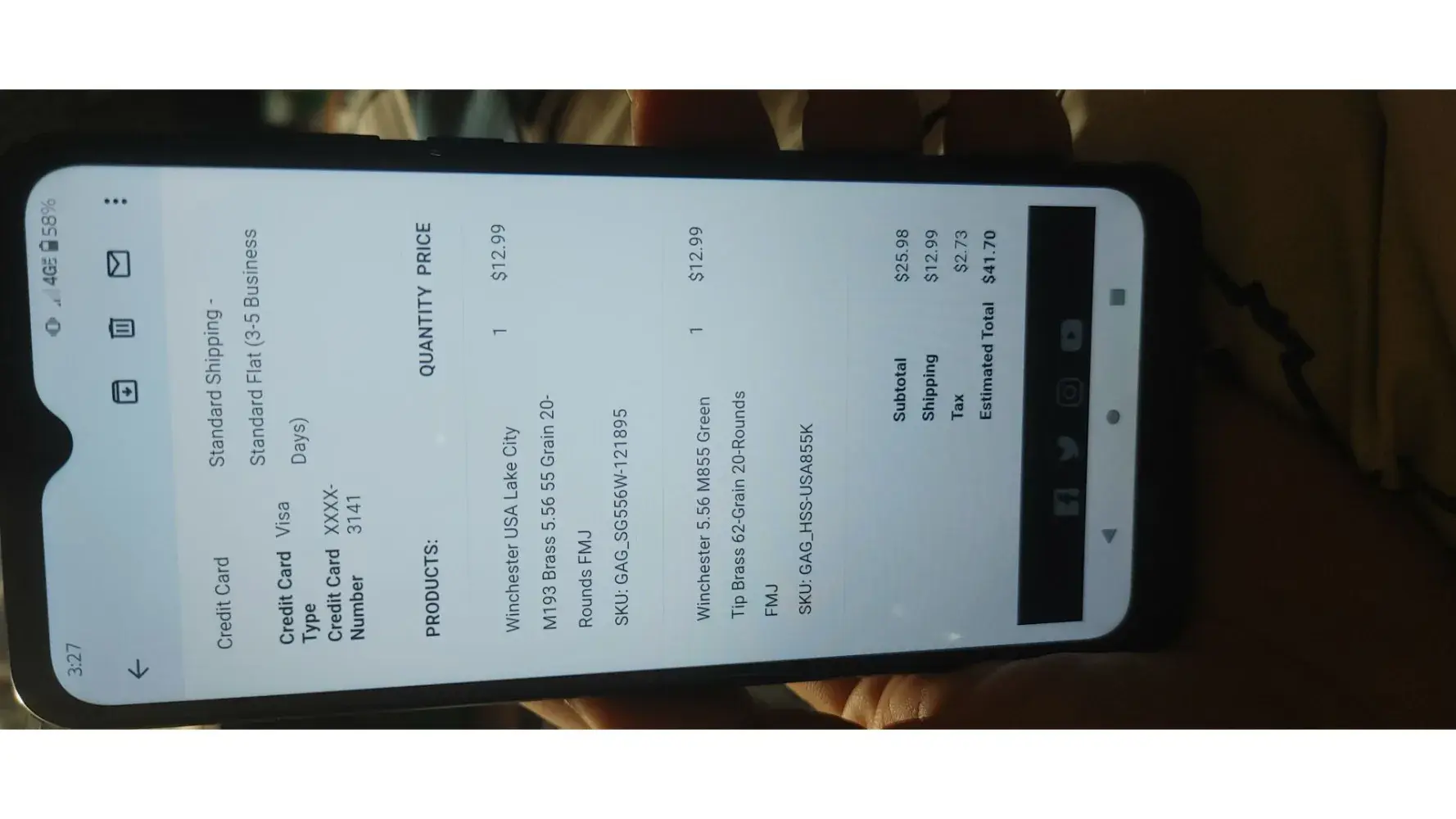 Hi yes my name is Wesley rowe I currently bought 2 boxes of 5.56 ammo one 55 gr box of 5.56 and one box of 62gr 5.56 ammo I only received one box of ammo and I paid for 2 boxes and only received one box. So how can this issue get fixed I dont money back I rather have the box of ammo I was missing from my order thanks wesley rowe contact me at [protected]