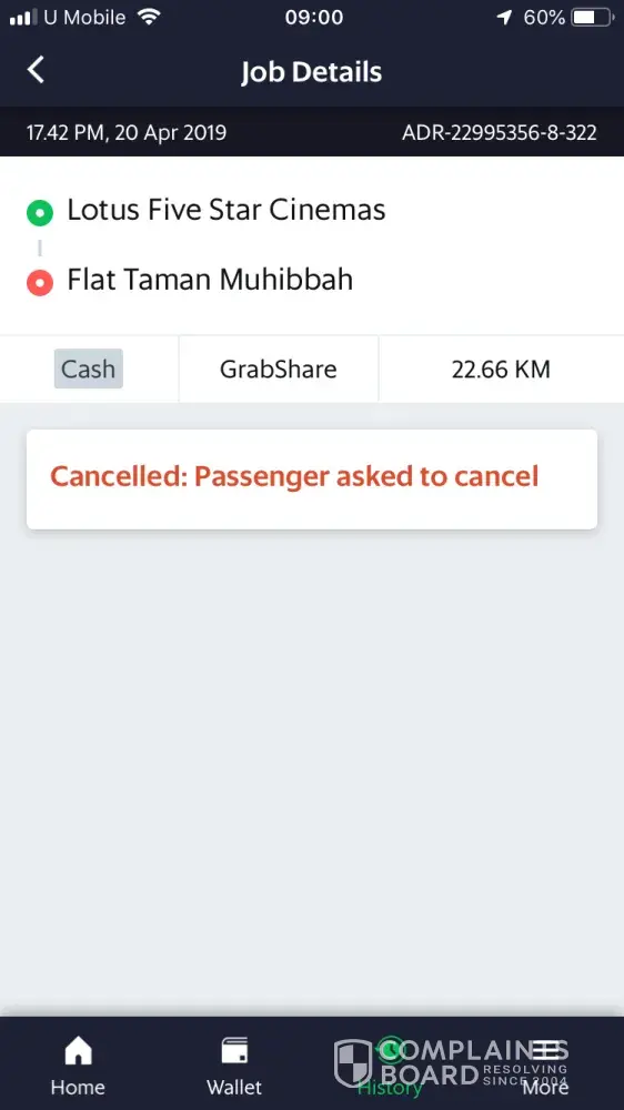 cancellation of grab booking by the driver
