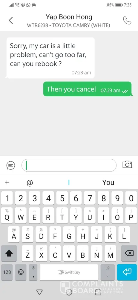 Saya nak buat aduan tentang drive grab.. Kes pertama drive grab cancel oder saya alasan dia tunggu lebih 5 minit sedangkan dia tidak datang pun ke location yang saya berikan.. Dia sampai ke location lain bila saya tengok melalui maps grab. Tetapi dia cancel. Lagi 1 kes saya oder n tunggu hampir setengah jam grab tak sampai sampai. Grab tersebut lansung tak berganjak.. Saya tengok melalui maps grab tersebut tetap berada tempat yang sama. Saya cuba mesej n call drive tersebut tapi tak di jawab.kalau tak nak ambil saya kenapa terima bila saya booking.