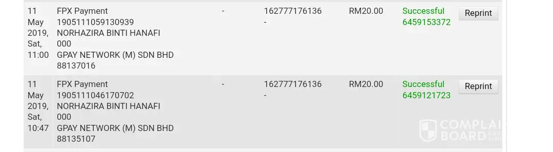 Tunggu punya tunggu tetap tak masuk akaun grabcar saya, saya buat lagi sekali payment online(maybank2u) pada date yang sama 11/5/2019 sebanyak RM20, untuk yang ni masuk dalam akaun grabcar saya. Jadi bolehlah saya terus booking untuk ke Mydin USJ