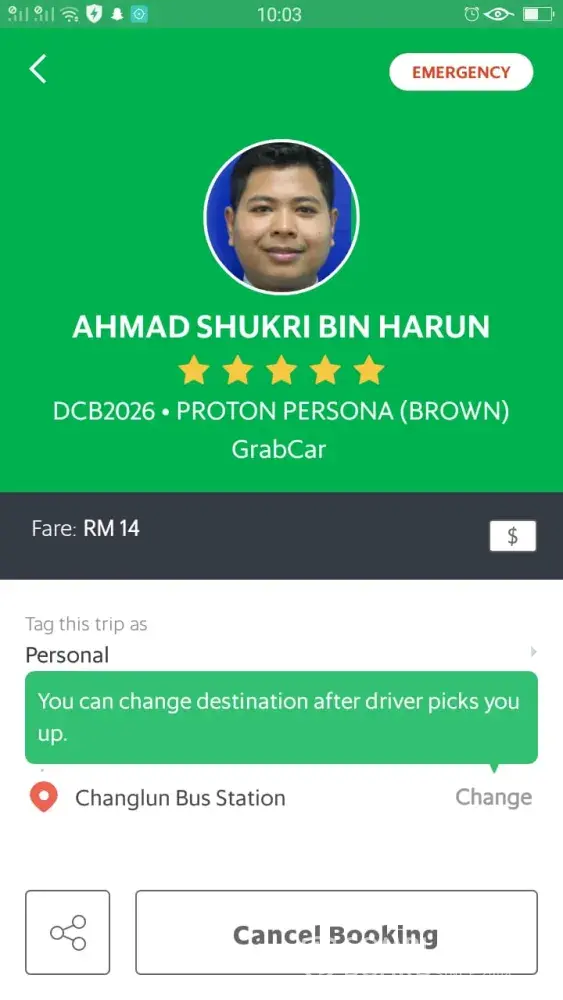 This is not an acceptable act by a professional service that I am paying for. The next ride cost me RM12 to the same place and I was late to work due to this.