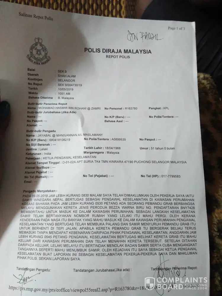 I very dissatisfied with the service due to IT & Service. Request report no and refuse to provide. From my experience, you want close the case. I can't imagine how Grab Singapore managed the Grab Malaysia.