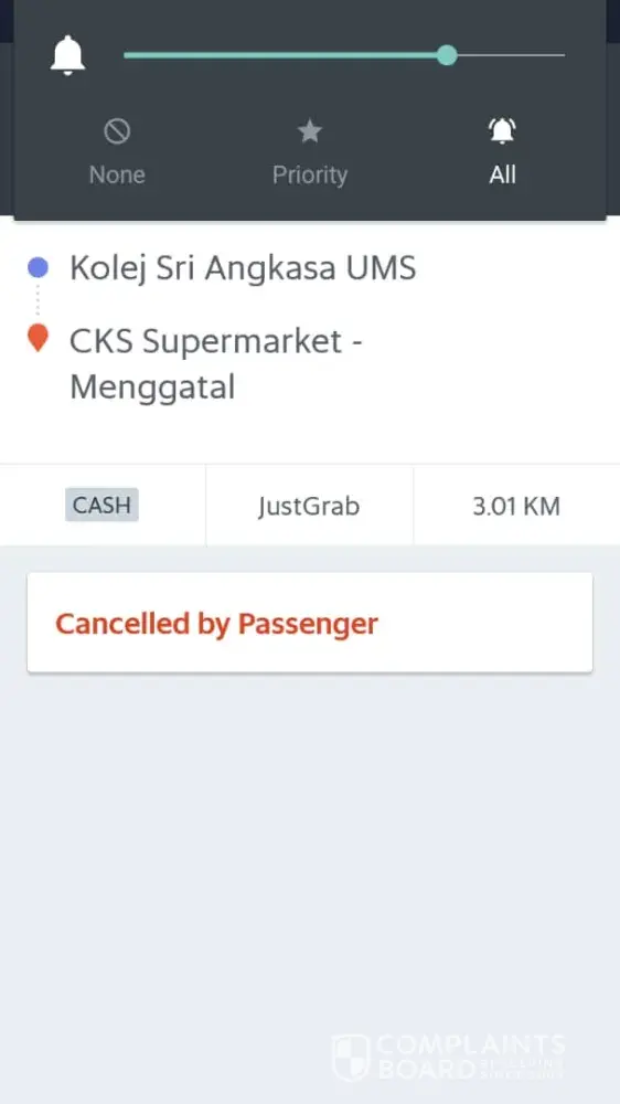 I have one job trip which from Kolej Angkasa UMS to CKS SUPERMARKET MENGGATAL. However the passebger has no show. I have try to called at several time and texting to the passenger however the passenger did not respond.