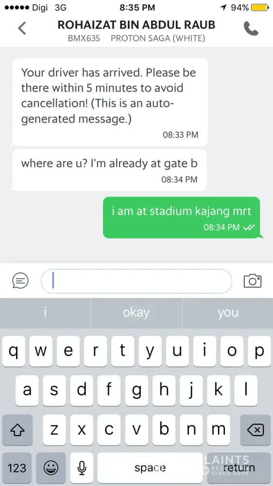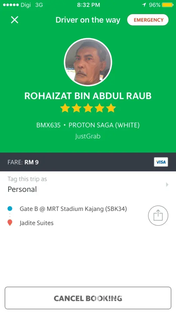 He said I entered the company which is in Amcorp Mall. If my location is at Amcorp, I wouldn't have entered IEM at the first place. I was forced to get off because he said he has accepted another call to pick up another customer.