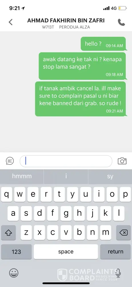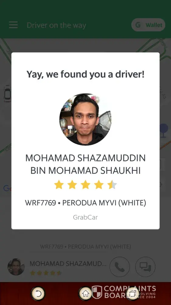 complaint against grab car plate number wrf7769 - driver mohamad shazamuddin