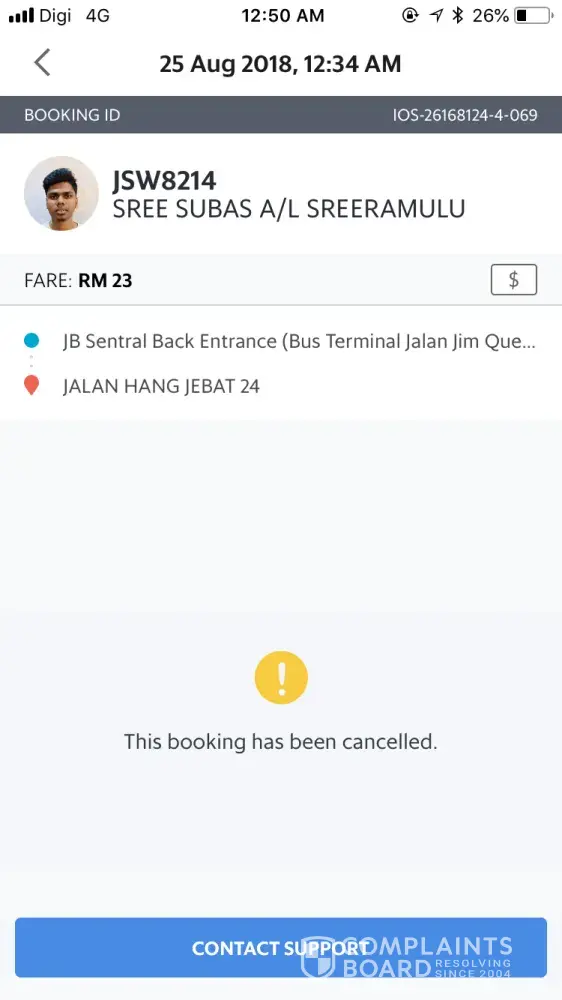 I apply for advanced booking and the driver accepted my booking, but shortly he call up and say he misread the address and not able to come for pick up. he asked me to cancel the booking from my side which i'm OK with (better than no show at last minute). but when i press the button "CANCEL BOOKING", there is no response from the Apps. The rest of the button is functioning properly and only this "CANCEL BOOKING" is not responding. Please help to cancel this booking properly and improve the apps function.