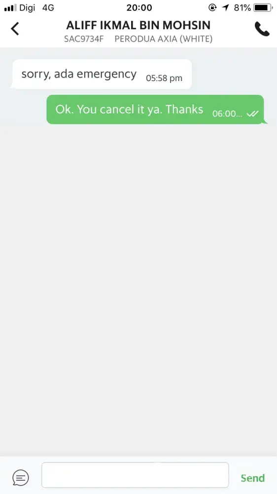 Yesterday, Thursday 02/08/2018 around 5.58pm I made a request from a grab in order to go back home after I finished work. I requested 2 destinations. First, from Green View Motel to pick up my mother there, secondly to Riverson Suites (to pick me up) and lastly to Edmund Labunda which was our house there. But the driver replied he has emergency but reluctant to cancel the trip himself as he was the one who wasn't able to pick up. Please make sure that this won't happened in the future, we don't want this kind of grab drivers. It was very unpleasant&inconvenient to grab riders especially when they have emergency. This is not my first time encounter this kind of problems, but many times. If this case came from driver's problem from the auto correct, please kindly settle this problem. We only want a genuine driver who willing to pick us up not this kind of driver.