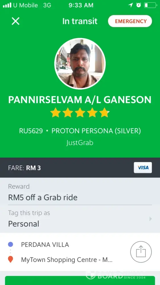 Grab driver name: uvarajan subramaniam
