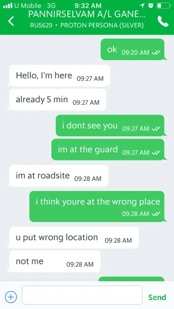This grab driver being so rude to me. im so pissed, he texted me saying that he is at the location that i put. then i look at the grab apps. his car is not arriving yet. the apps itself showed me that ‘he is arriving' not arrived. so i told him im at the guard house. he blamed me saying that im the one who put the wrong location. i said no, im always go to work using this location. he must be at the wrong place. i will show you the screenshot. then i walk outside of my house area and saw his car waiting at the side of the road. i entered his car and show it to him, here look at this. i thought you are stuck in traffic. then he said why i didnt look for him. why i didnt texted him and all. i said this is the first time, grab driver wait for me outside of the road. this is a rapid stop, not a car stop. i pay for his service, it is not free. he should admit his fault, not blaming me. i have proof.