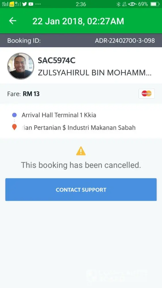 After my flight was delayed from KUL to BKI for 3 hours, I was eager to go home as I was very tired. I booked a Grab, the driver (Zulsyahirul bin Mohammad, SAC5974C) called to confirm which Gate to meet, and that he prefer cash, although I had put in my debit card info. I agreed to meet him at Gate 4, and agreed to pay cash. He arrived almost 10 minutes AFTER the "your driver has arrived" message appeared. When he arrived, he got out of the car, and offered to put my luggage in the back of his car (DMAX) which was exposed. So I said it's okay, it will fit in the back seat with me. Once we got into the car, he started driving then he asked for my location and I told him it was near the Taman Ujana Rimba Tropika. He slowed down the car, and said "Boleh cancel tak?". I scolded him for not telling me earlier when he first called as I could have gotten another ride. He just kept driving very slowly. I was just too tired to get out and then he said that he has already cancelled the booking! I got on the phone and called my daughter to say that I was in the Grab car and was on the way home already. He had no choice but to comply. I told him I've already checked the fare. It was RM13 and that I will pay him cash just as we agreed earlier. I also told him that I'm very tired due to the long flight delay, and he replied me, "Saya tak suruh flight tu delay".