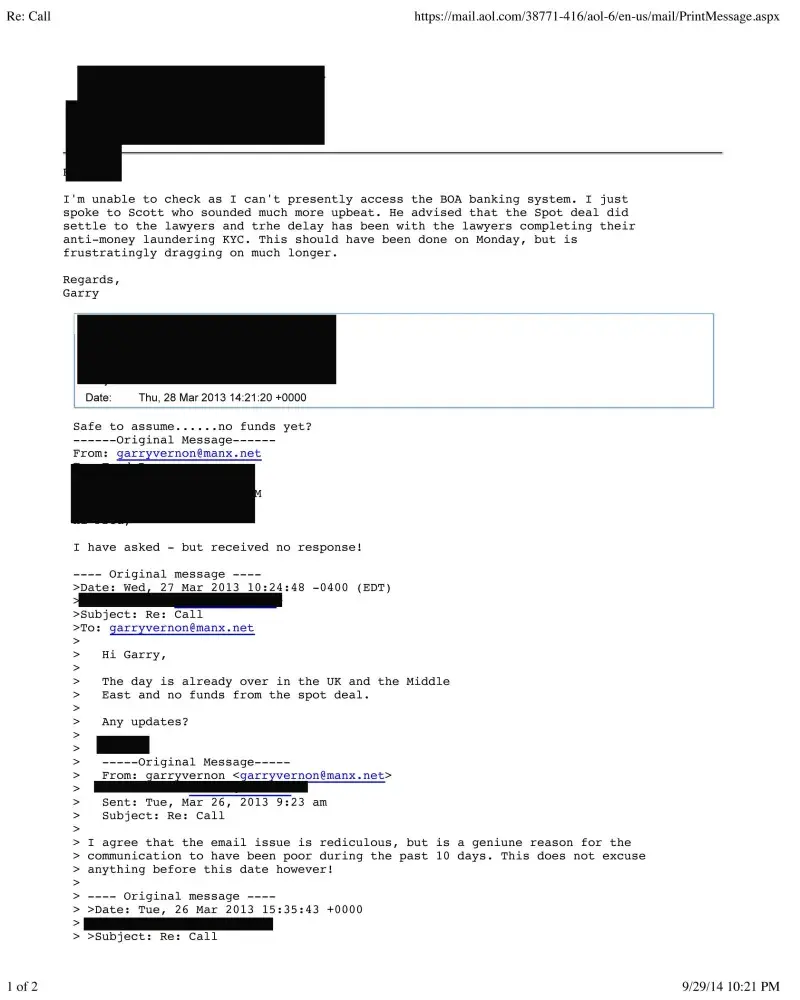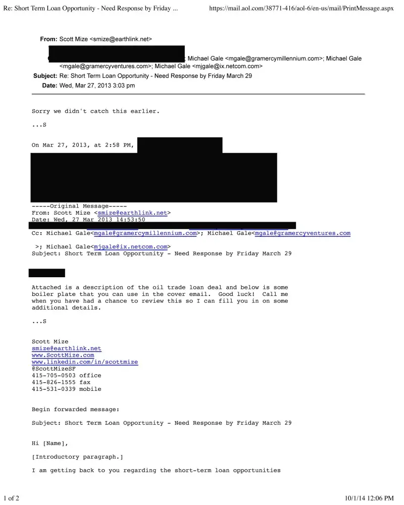 To add more texture to these statements. Michael Gale used investor money to satisfy fines in his home country of Australia. In this instance; $50, 000 was wired into a Gramercy Private Equity Holdings, Inc, Bank of America account. At this time, Michael Gale used that money to pay the Australian authorities so that he could have his passport re-issued. When the subject came up, Gale flatly denied having used these funds for his personal financial problems. However, this can be substantiated by the attached email exchange between Garry Vernon and a former Gramercy employee. Another successful attempt at misdirection can be seen in Gramercy Commodities. The UAE trading entity setup by Gale and his partners was nothing more than a shell organization brokering bogus oil trades. To date, over $4M dollars of upfront fees have been collected from unsuspecting investors, and not one oil trade has been consummated.
