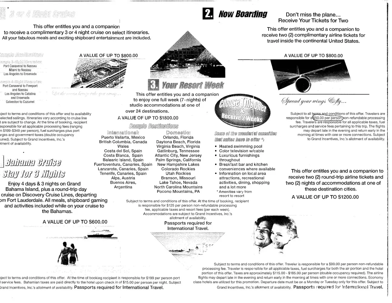 Grand Incentives was promised two free airline tickets, for attending travel seminar