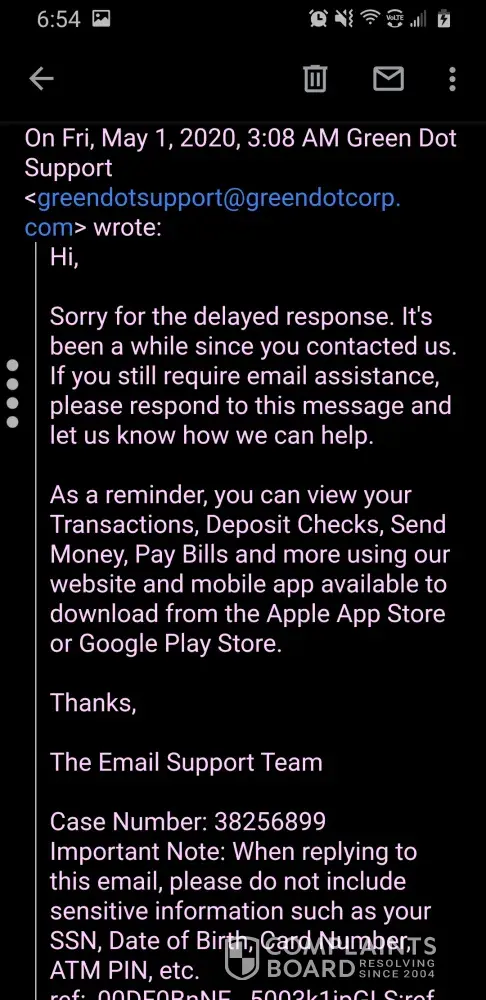 Green dot is nothing but thieves and liars straight up this company needs to get shut down for good I received an email from green dot today including a text message saying they received my direct deposit but will not post it until may 1st 2020 when i'm supposed to get it 4 days earlier from what there site says since the 3rd lands on a sunday and the social security is closed on the weekends so I called them about it and green dot told me that there wasn't any pending deposits which is a lie because that's not what the email told me and the funny thing is i've been with green dot for several months now and haven't had any issues until now the green dot site says if you set up direct deposit you'll receive your government benefits 4 days earlier and top of that green dot also told me once they receive the notification from social security green dot will post the money to your account now take a look at the different dates when my social security goes into my green dot account I took several screenshots of it including the email they sent me these people are nothing but thieves and liars