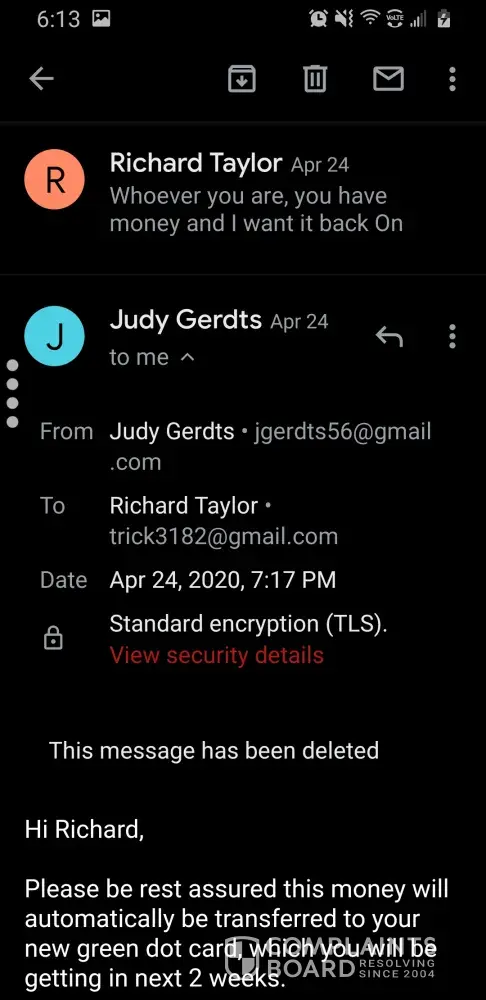 I do have the receipt that show the money was given to Green Dot.
