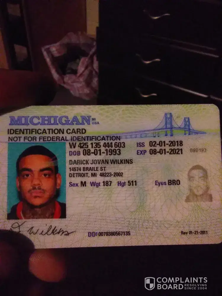They told me to send a copy of my driver's license to verify my identity. My name is Lakia Mimms.
