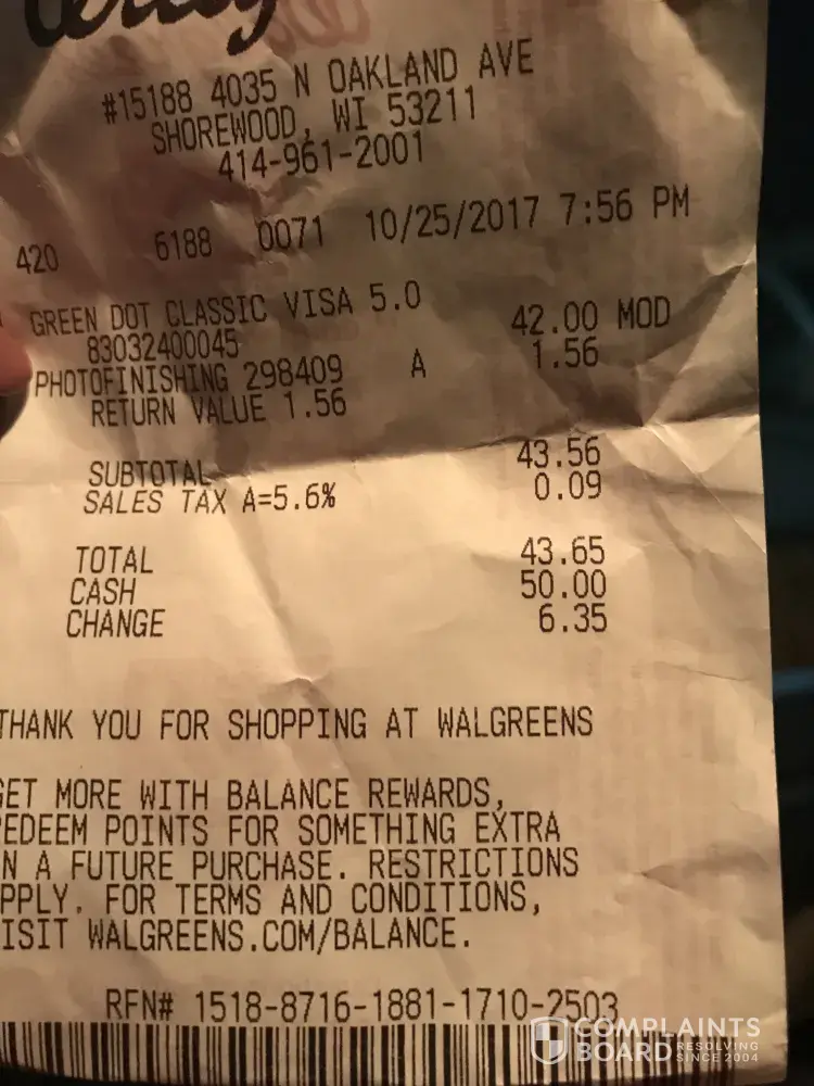Good evening I am complaining on behalf of green dot prepaid reloadable debit card Visa card, my purchase was made at Walgreens in Shorewood wi. I'm very upset I pick this up for a birthday present and paid $42.00 the 16 digit card number states invalid can't even speak to anyone the false numbers will not do anything but disconnect call. I am requesting a refund of monies I'm humiliated for this horrible mishaps please contact me asap I Won't My Money Now very upset. My grandchild was total hurt broken trying to shop and was embarrassed.