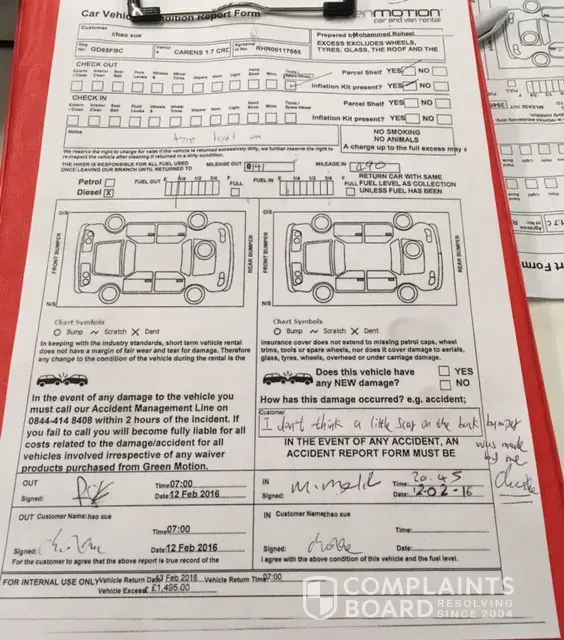 Me and the additional driver Miss Pardi had our worst experience with Green Motion car hire company ever!