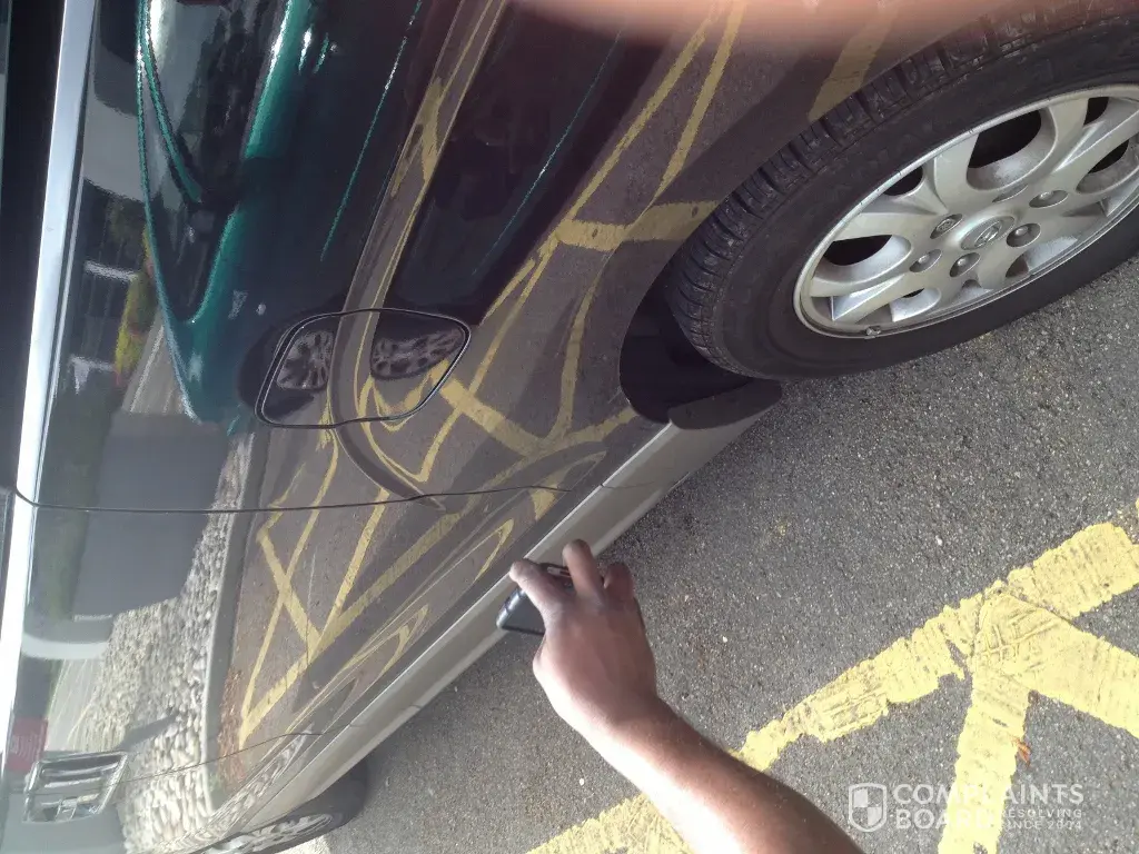 One official, who was in the office, came out with me to inspect the car. He went straight to the wing side of the vehicle and pointed out a scratch on the body of the vehicle, stating this was new. It looked new to me as well but it was not there when I parked the car. There was clearly no way of verifying what had happened to the car between the point when I drove into the car park and went into their office, to the point when he came out to inspect.