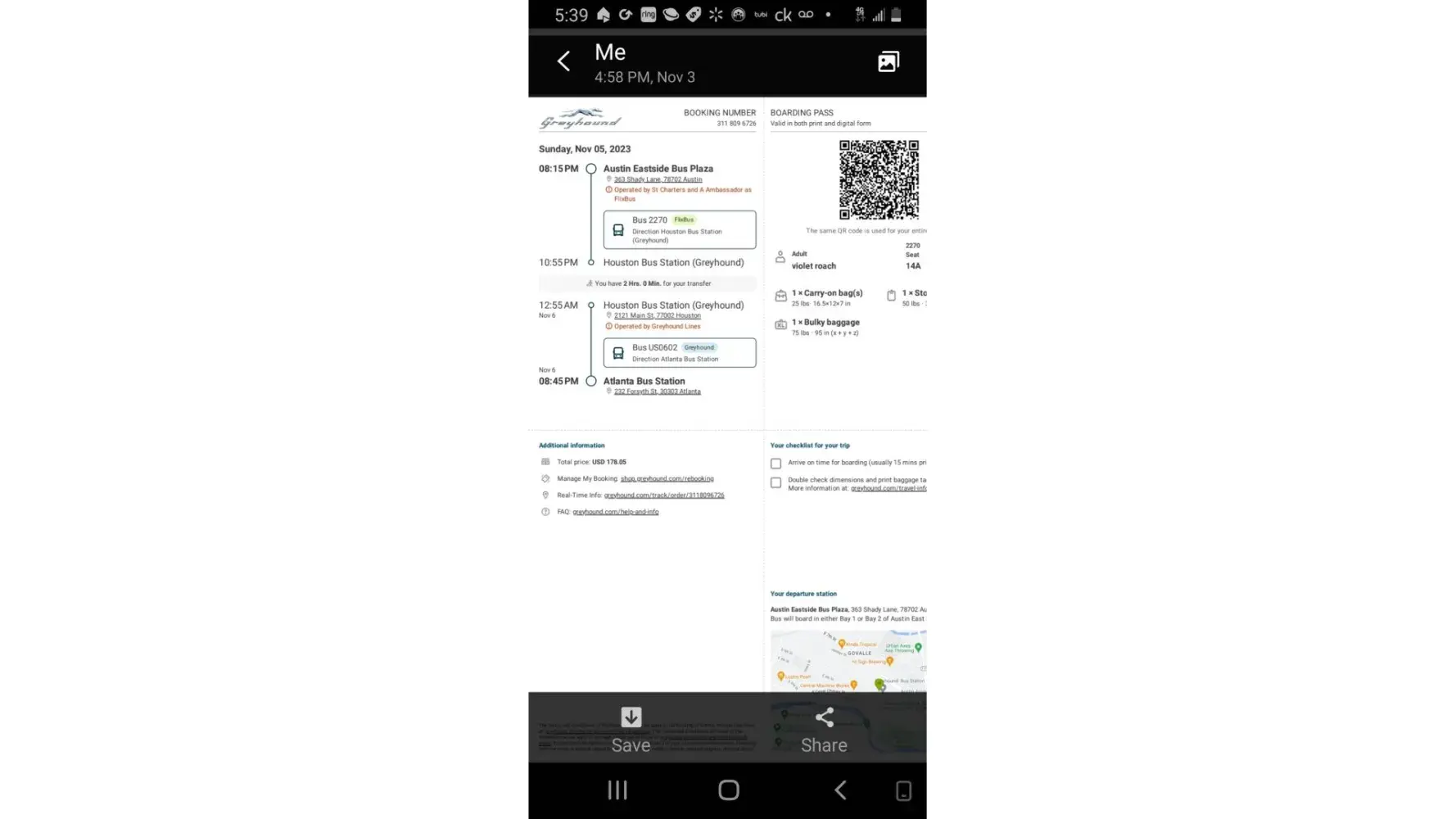 We were traveling from NYC to Boston on 10/13/23. We were supposed to leave NYC at 5:30 pm from Port Authority bus station.