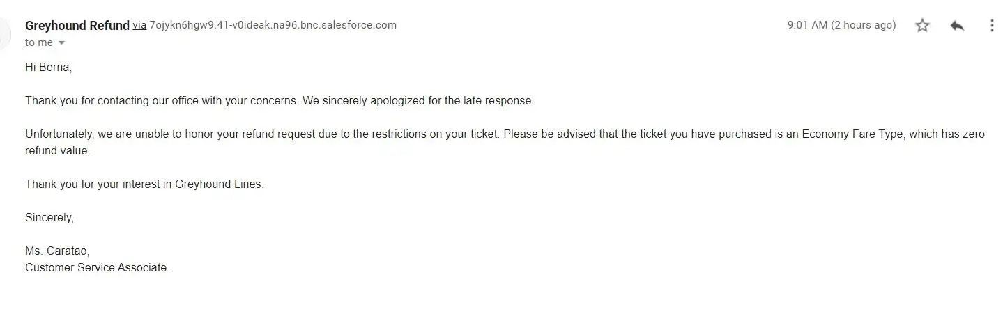 This is a general complaint, greyhound is incompetent and non responsive. I want no canned response from them.