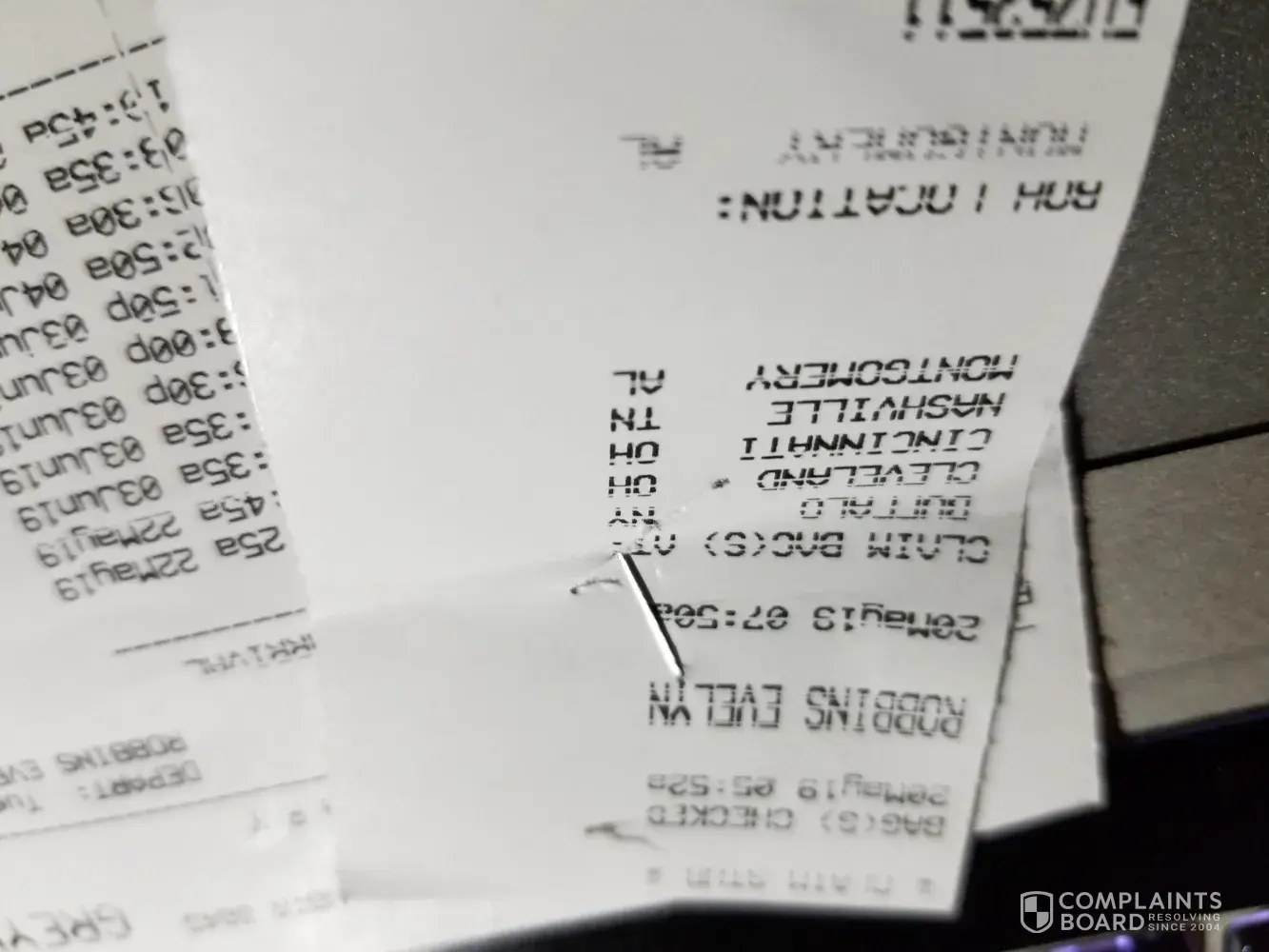 We purchased our tickets roundtrip from Rochester, New York to Montgomery, Alabama leaving on May 20th, 2019 approximately 6: am. We were scheduled to arrive at the Montgomery, Alabama on Tuesday 21st, 2019. We were riding on bus number 6453. The bus broke down before we got to Erie, Pa. We waited approximately two hours to get on another bus. The bus took us to Erie, Pa greyhound bus station. We transferred our luggage to another bus. We got to Nashville, Tennessee, however, there weren't enough drivers to transport. We had to wait nine additional hours to catch a bus to Montgomery. The Greyhound gave food vouchers of 7 dollars and 50 cents to Ms. Robbins, and Ms. Jones, but not to Mr. Robins. Ms. Robbins is elderly and disabled. It was an extreme hardship on her as her entire trip from Rochester, NY to Montgomery, Alabama took 48 hours. It was also difficult for Ms. Jones and Mr. Robbins as they walked with a cane.