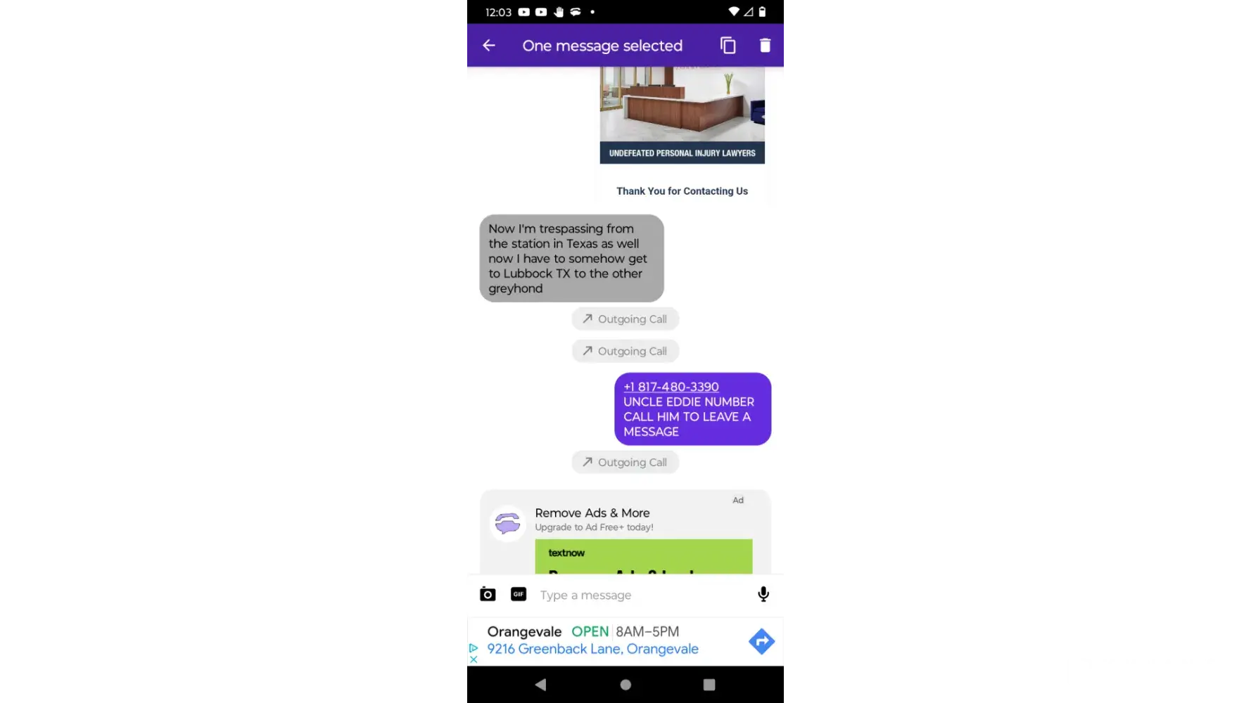 Trespass in the middle of nowhere without any money the phone is low in battery. GREYHOUND staff put these passengers life in unsafe situations