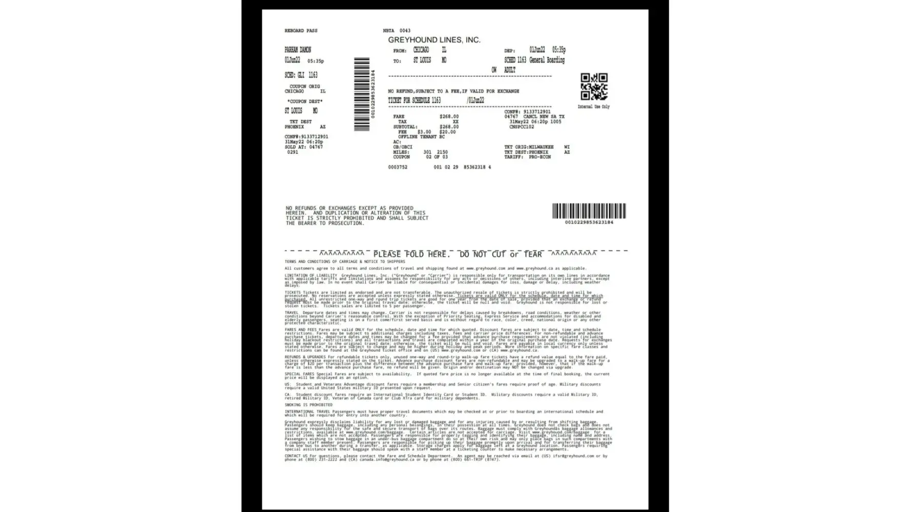 On May 31, 2022, approximately 1820, I, Titus Whitelow purchased a greyhound ticket for Damon Parham from Milwaukee. WI 1305 hours, June 1, 2022, to Phoenix, AZ 0640 hours for $268. Which, they failed to enter the correct name, Damon Parham, a the passenger. Also, I was coerced into accepting additional charges for that name correction.