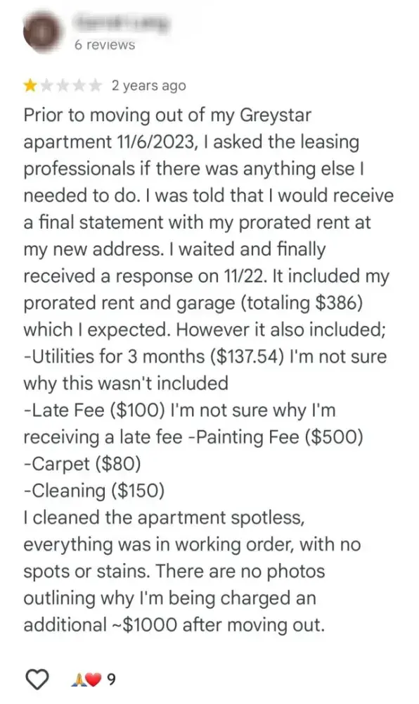 However, three months after moving out, I received an unexpected call from a Greystar representative. The person was extremely rude and demanded that I pay for a full year of rent because I allegedly missed one month’s payment. While I am willing to resolve the issue and pay for the missed month, I do not agree to being charged for an entire year, as this was never part of our agreement.