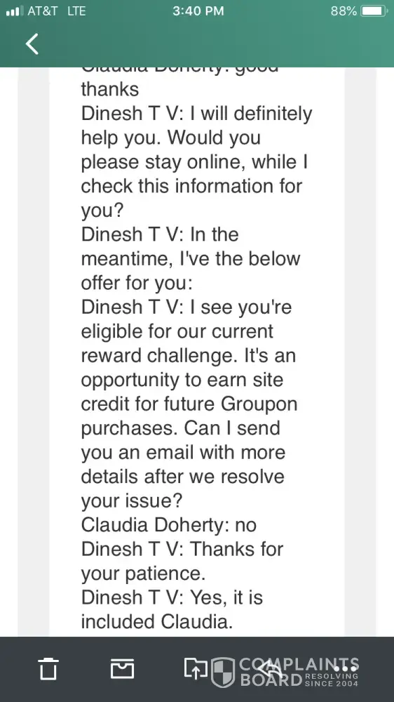 I clicked on "Email Us" and "Chat". NOTHING happened and this was during business hours. I invested about 30 minutes, from the office, trying to reach a human at Groupon in some form including internet search, etc. Total waste of 30 minutes.