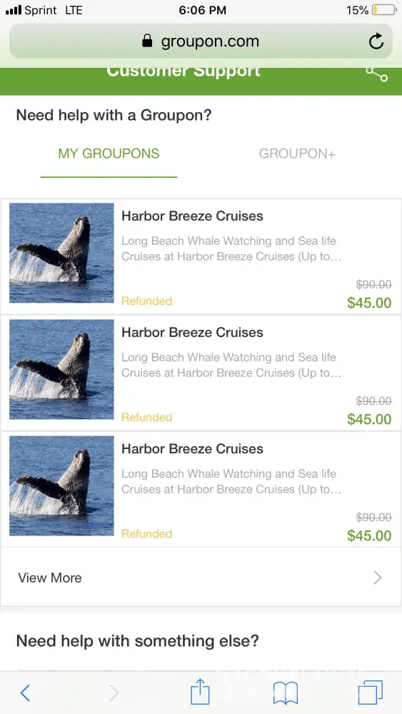 I ordered 2 tickets for whale watching and I call Groupon tonreasure that I have purchased them but when they told me that it was 48in advance to use the tickets so I kindly ask the representative to refund my money back for 45$...I've called about 3 times and I've talked to to the representatives and they've told me the same thing wait up to 10 days I've waited approximately 20 days and no refund yet I'm verry upset with the customer support that Groupon Caries...