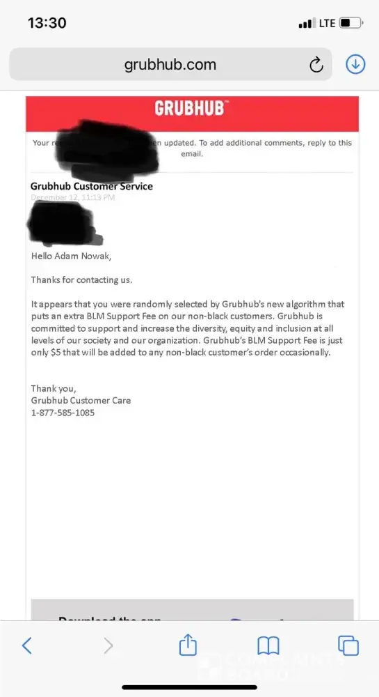 The incident is Grubhub's new policy to put extra fee of $5 on their non-black customers selected by their newly invented algorithm to support BLM movement. I noticed that while ordering pizza during the checkout and confirmed after contacting the Grubhub. And without any doubts I will not use the services of a company that puts illegal fees on it...