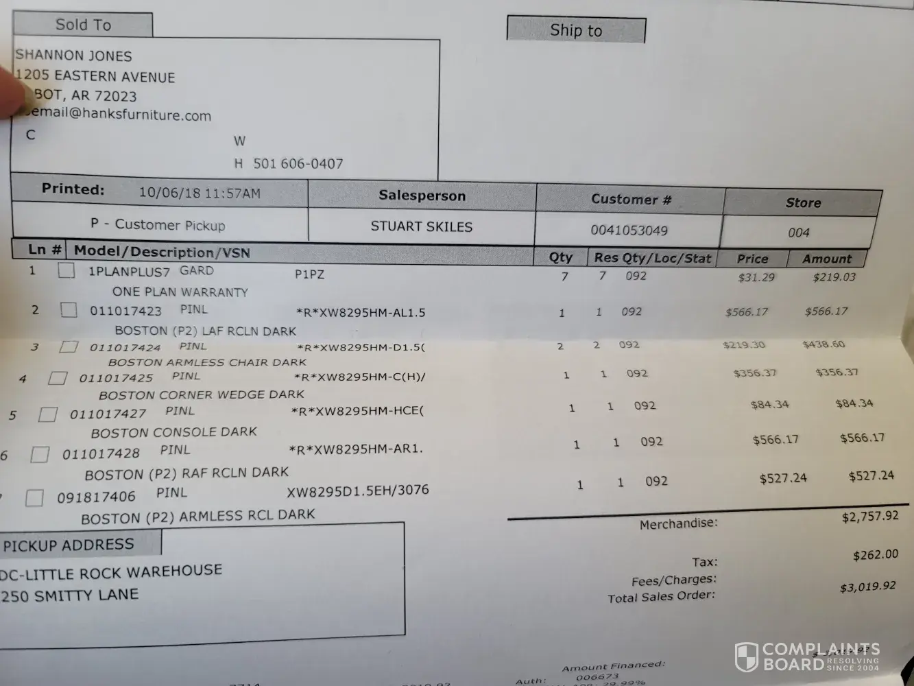 The complaint has been investigated and resolved to the customer’s satisfaction.